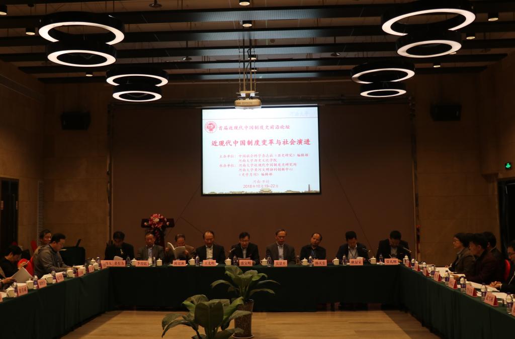 2018年10月20日―22,由中国社会科学杂志社《历史研究》编辑部、麻豆社 主办的“首届近现代中国制度史前沿论坛——近现代中国制度变革与社会演进”在河南开封市新东苑大酒店隆重举行。国务院学科评议组成员、复旦大学教授吴景平,国务院学科评议组成员、南开大学教授王先明,国务院学科评议组成员、北京师范大学教授李帆,近现代史研究著名专家四川大学教授陈廷湘、杨天宏,近现代史研究著名专家中国社会科学院近代史研究所研究员于化民,近现代史研究著名专家湖南师范大学教授李育民,近现代史研究著名专家中央党校党史部教授、副主任张太原,近现代史研究著名专家南开大学教授、历史学院院长江沛,《中国社会科学》杂志社总编室主任耿显家,《中国社会科学》杂志社史学部副主任、《中国社会科学文摘》副主编晁天义,《中共党史研究》编辑部主编高远戎,《近代史研究》编辑部副编审潘晓霞,以及中山大学、山东大学、暨南大学、上海交通大学、上海大学、《东岳论丛》杂志社、河南省社会科学院、郑州大学、麻豆社 等单位的共计50余位专家学者莅临参会。
