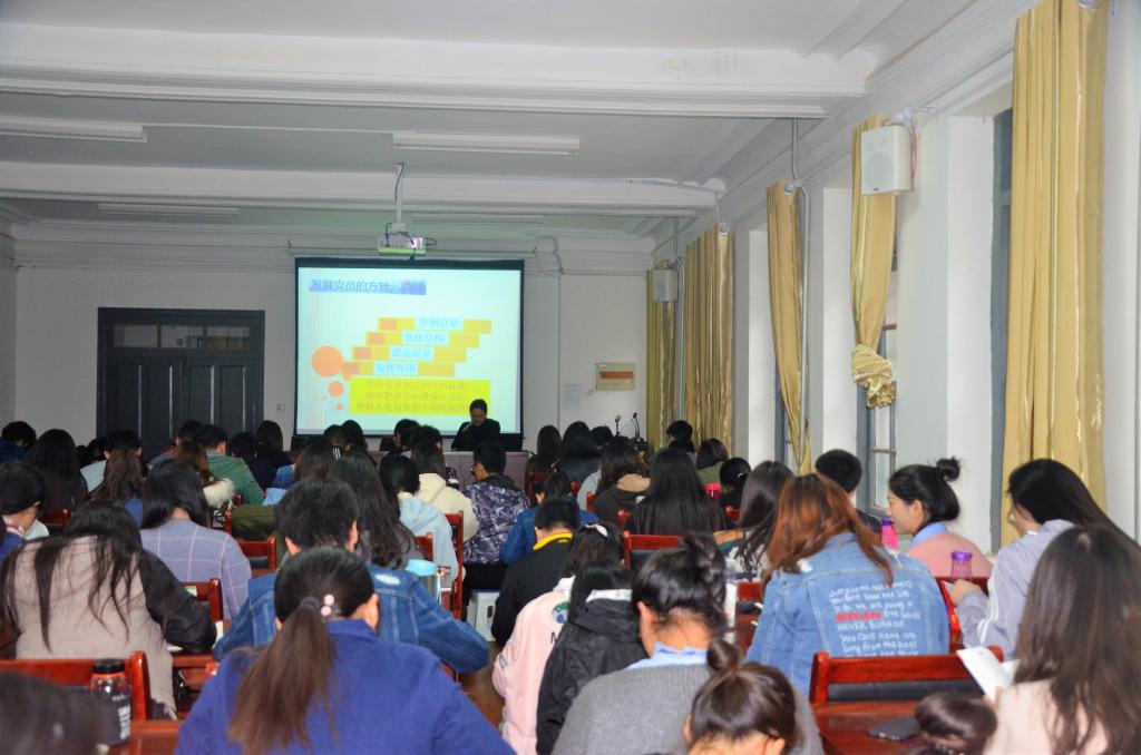 2017年青年马克思主义者培养工程暨党课培训第三讲在学院111教室举行,学校党委组织部组织科科长张烁受邀为学院入党积极分子和学生骨干讲授题为《严格组织程序,规范党员发展》的专题党课。