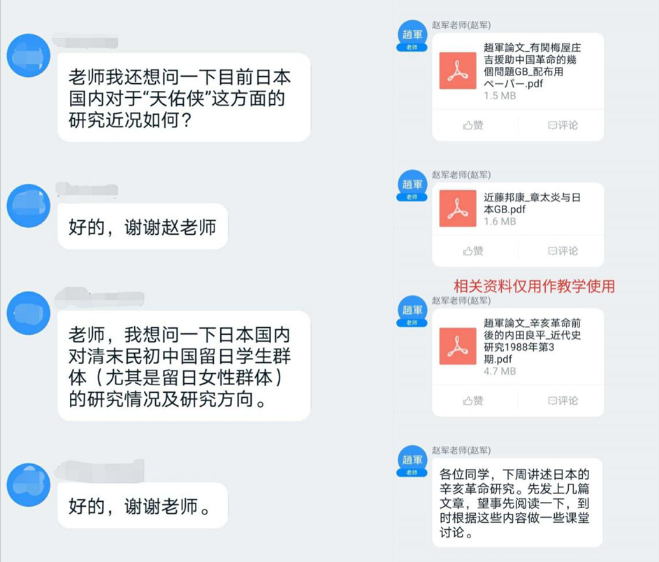 在校国际交流处开展《高水平海外云课堂》项目之际,结合培养方案有关要求,积极拓展对外合作交流渠道,加快对接国(境)外优质教育资源,成功引进高水平海外课程《日本的中国近现代史热点和前沿研究(Hot History of China and Frontier Studies in Japan)》。该课程由日本千叶商科大学赵军教授主讲,于2020年4月30日至6月30日授课,每周五下午4个学时(15:00一18:00)。