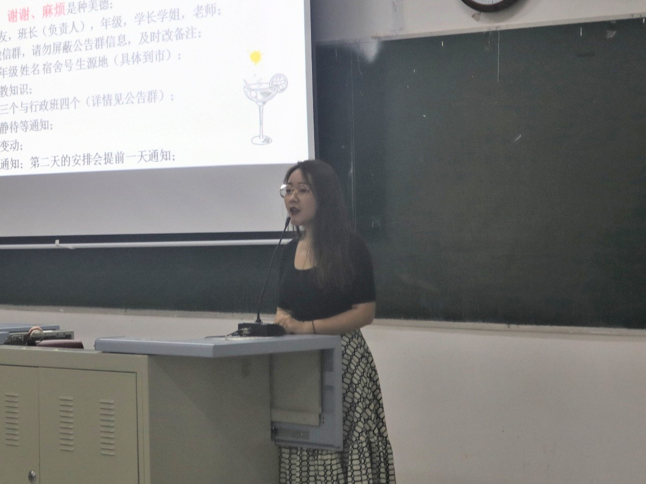 大家庭。接着,她向同学们介绍了学院的规章制度,并要求大家务必遵守学院的管理规定,特别是在疫情防控期间学院制定的各项管理办法和要求,并进行了宗教知识学习及其教育。随后,她从学习、生活、心态等方面为新生提供了99条建议。她强调,大学与高中存在诸多区别,同学们要及时调整心态和探寻适合自己的学习方法,保持独立与理性的思考,确立自己的学习目标,并对未来的学习生活做好规划,在不断的学习中努力找寻自我。此外,她希望同学们能够在大学生活中与老师和同学积极交流,尽早适应大学生活,并对其未来的发展和成长寄予美好祝愿。