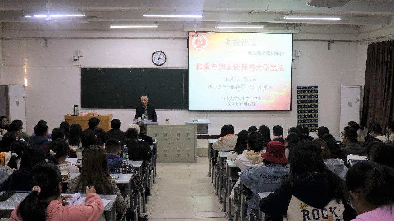 教授、博士生导师李振宏为2020级本科新生作了《和青年朋友谈我的大学生活》的专题报告,王瑞芳等老师以及全体2020级本科新生参加。本次报告会由麻豆社