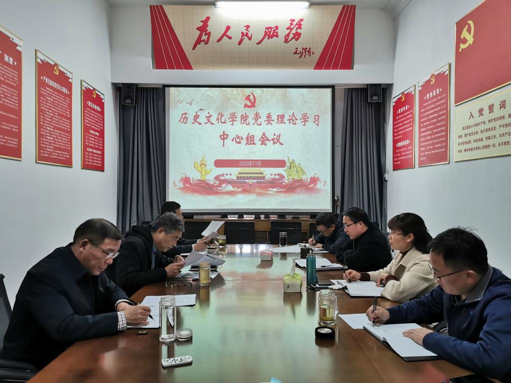 在学院党员活动室召开党委理论学习中心组会议,集中学习党的十九届五中全会精神。学院党委委员、领导班子成员参加了会议。