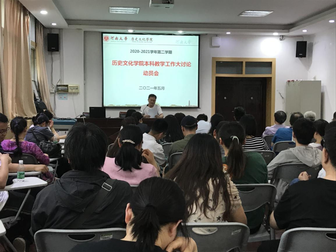 本科教学工作整体良好,但也确实存在如年轻教师教学手段单一、学生基础不牢等问题,希望能够通过本次教学讨论工作解决或改善在对本科生的教学和管理方面存在的不足,有效果提升本科生教学质量。随后,学院领导班子成员分散到中国古代史教研室、中国近现代史教研室、世界史教研室、考古文博系及劳动教育五个小组,通过教学沙龙的方式进行分组讨论。本次小组讨论的议题包括如何将党史教育融入到教育教学中间去,如何进一步加强一流专业、一流课程建设,如何进一步加强思政课程和课程思政建设,如何深入开展公共课程教学改革,如何推进劳动教育及劳动课程建设,如何进一步推进专业布局及专业结构优化,围绕新一轮审核评估开展教育教学的思考以及如何提升实验课程建设及优化实验课程内容、师德师风建设这九个方面。各小组结合本组实际对相关议题进行深入思考讨论并于会后形成调研报告。