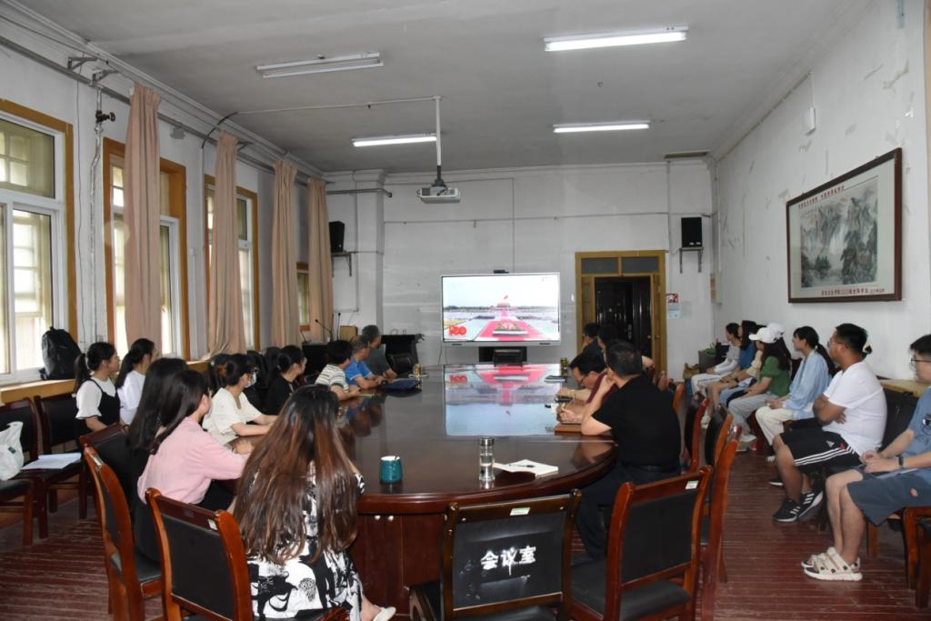 领导班子成员、教师代表以及部分学生党员在学院三楼会议室集中观看大会在线直播。