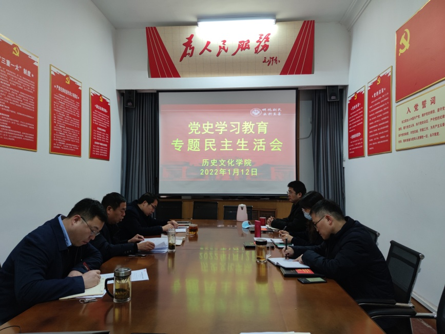 召开2021年度党史学习教育专题民主生活会,学院全体领导班子成员参会。会议由学院党委书记张占党主持。