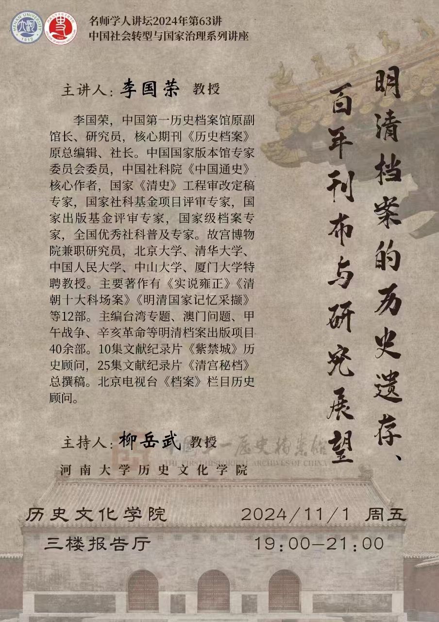 【讲座预告】李国荣:明清档案的历史遗存、百年刊布与研究展望