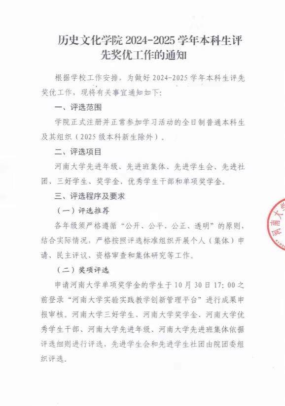 麻豆社 2024-2025学年本科生评先奖优工作的通知
