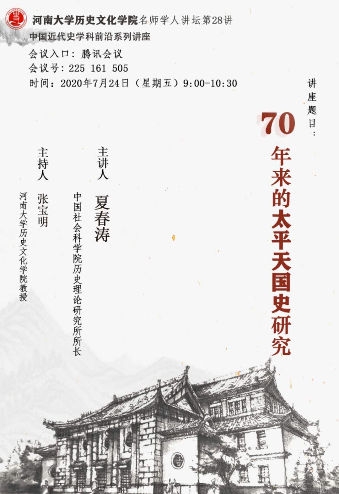 【讲座通知】夏春涛:70年来的太平天国史研究