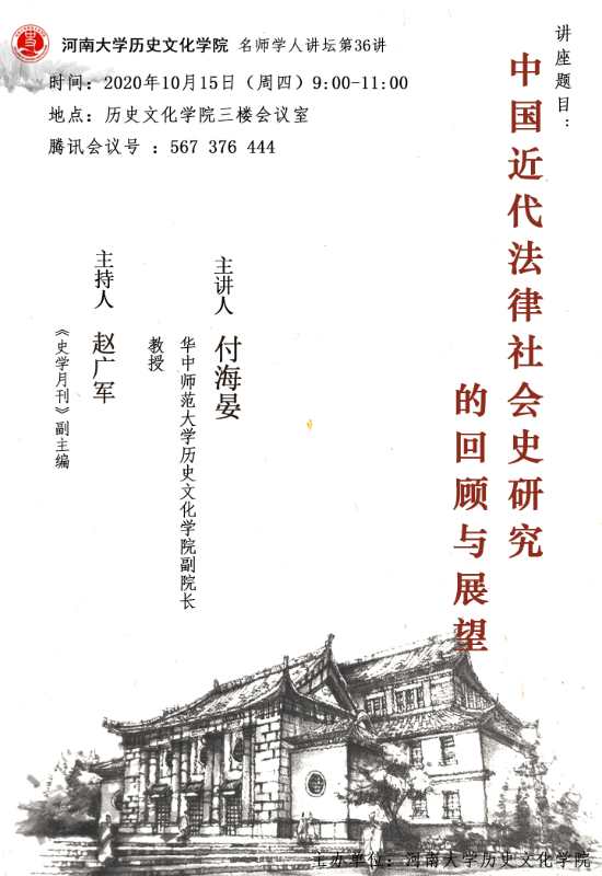 【讲座通知】付海晏:中国近代法律社会史研究的回顾与展望