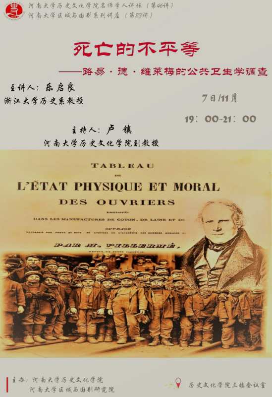 【讲座通知】乐启良:死亡的不平等——路易·德·维莱梅的公共卫生学调查