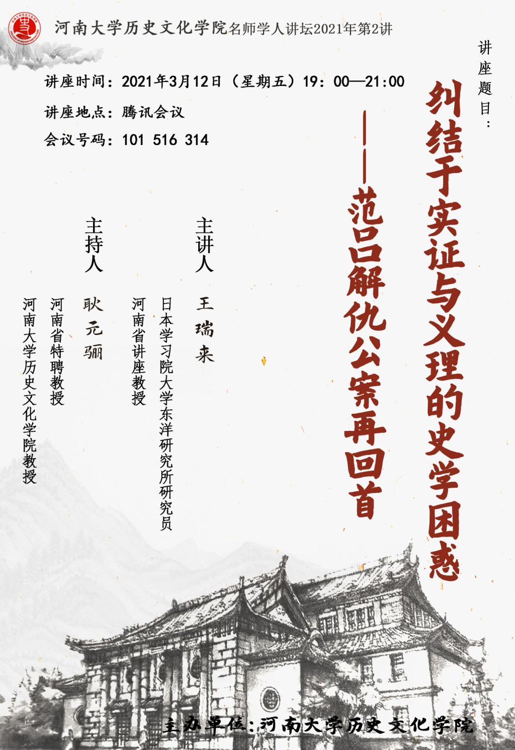 【讲座通知】王瑞来:纠结于实证与义理的史学困惑——范吕解仇公案再回首