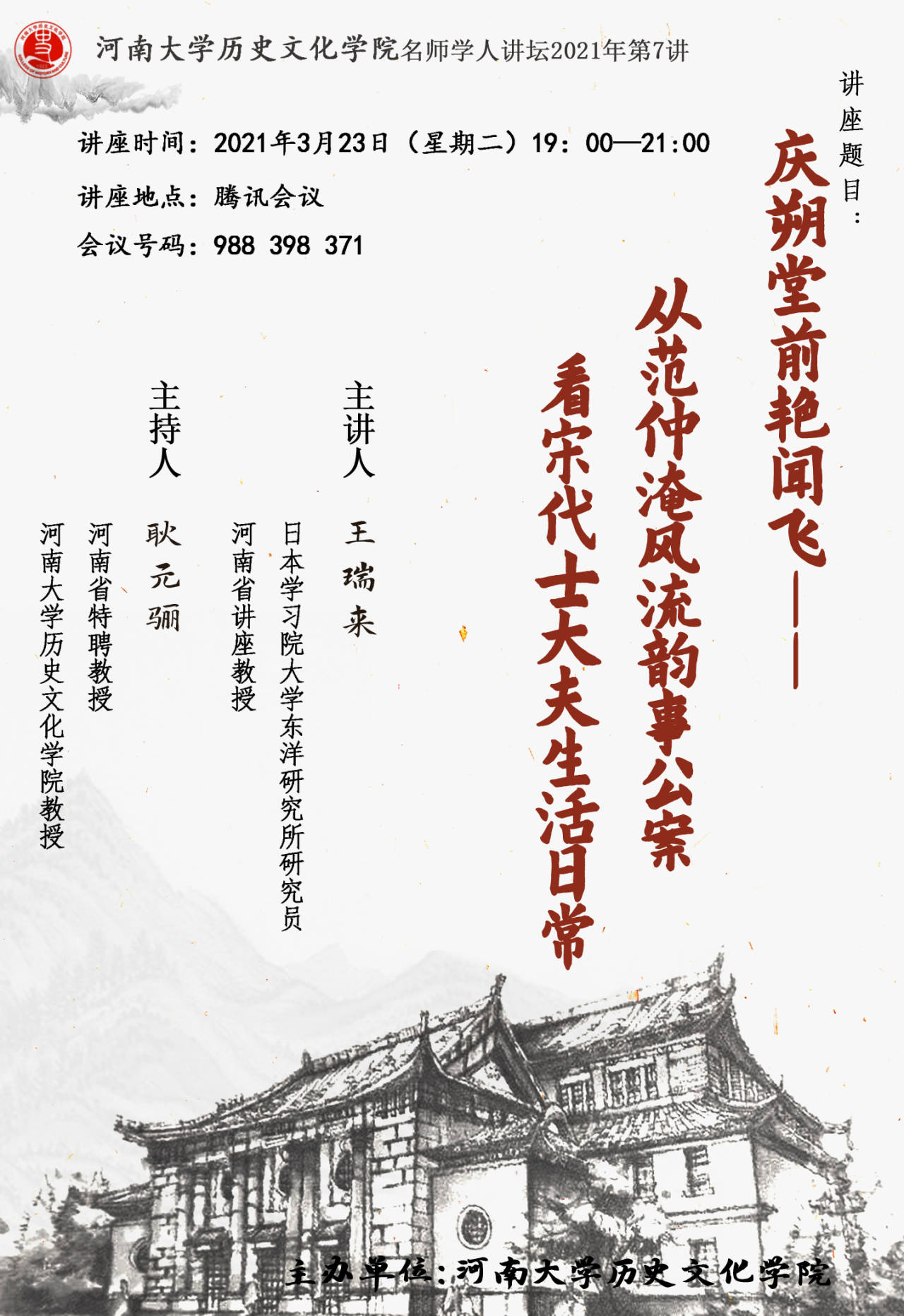 【讲座通知】王瑞来:庆朔堂前艳闻飞——从范仲淹风流韵事公案看宋代士大夫生活日常