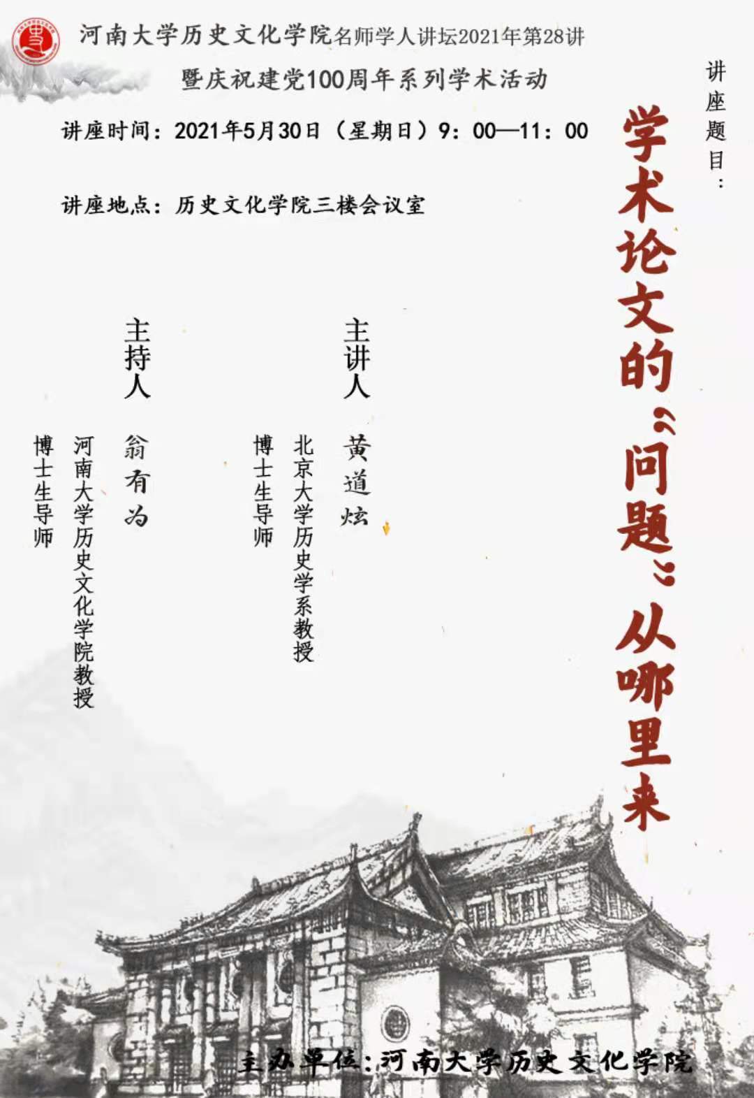【讲座通知】黄道炫:学术论文的“问题”从哪里来