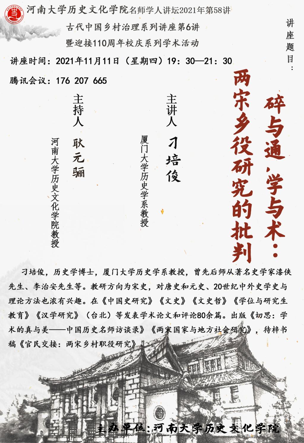【讲座通知】刁培俊:碎与通,学与术:两宋乡役研究的批判