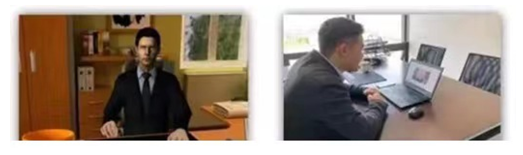 副机位:设备摄像头从考生后方成45°拍摄,要保证考生主机位屏幕清晰地被复试专家组看到。关闭移动设备的通话、录音、录屏、直播、外放音乐等可能影响面试的应用程序,并保持平台软件静音(或可在副机位移动设备插入耳机,防止干扰主机位复试)。若副机位使用手机则需充电口向右横屏摆放,机位放置如下示意图所示。