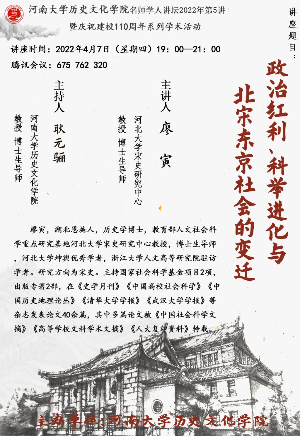 【讲座通知】廖寅:政治红利、科举进化与北宋东京社会的变迁