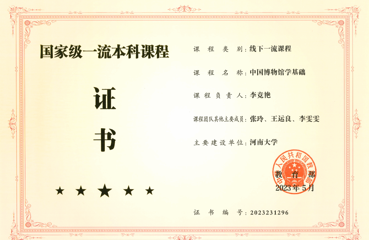 办学历史悠久:创始于1985年的文博干部专修班,1988年起在历史学专业招收文博方向本科生,1992年正式获批河南省最早的博物馆学专业,2016年获批河南省高校综合改革试点专业,2019年获批河南省一流本科专业建设点,2020年获批国家级一流本科专业建设点。