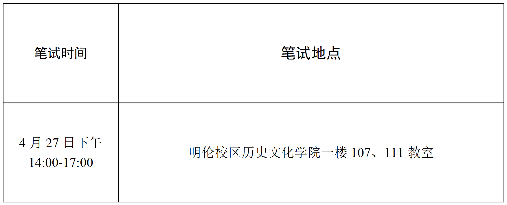 4月27日上午8:30-11:30在学院一楼111教室进行资格审查,考生需持身份证、相关学历学位证书原件(应届毕业生须提供学生证)到场进行资格审查。