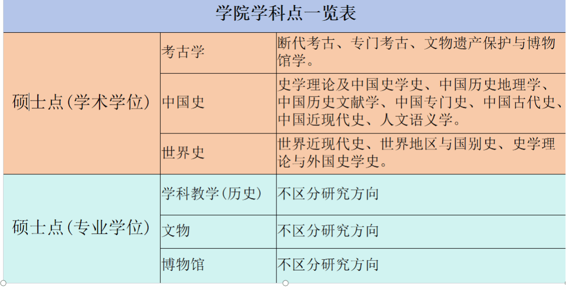 学院目前有考古学、中国史、世界史三个一级学科博士、硕士学位授权点及博士后科研流动站,学科教学(历史)、文物、博物馆三个专业硕士学位授权点。
