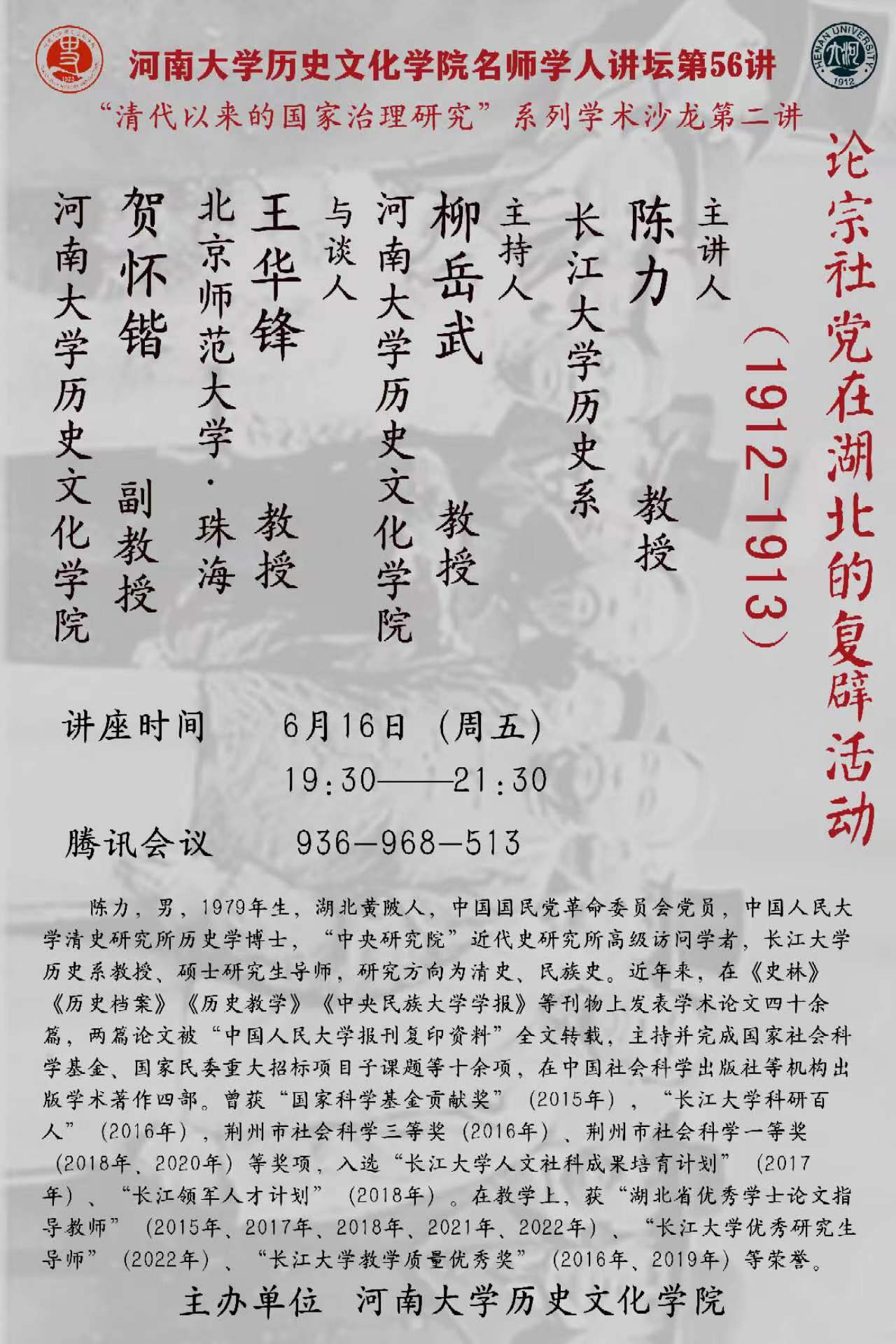 【讲座通知】陈力:论宗社党在湖北的复辟活动(1912-1913)
