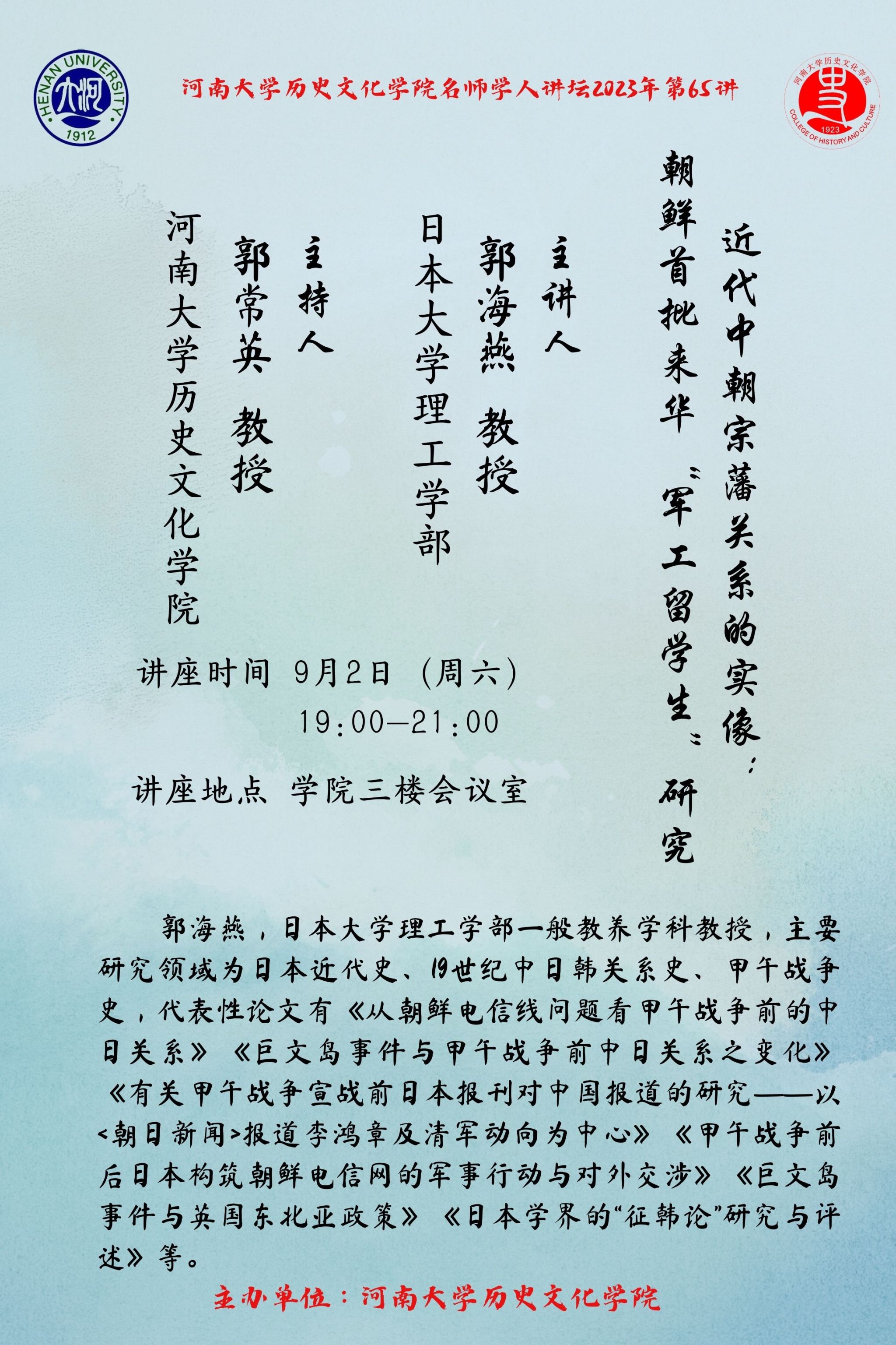 【讲座通知】郭海燕:近代中朝宗藩关系的实像: 朝鲜首批来华“军工留学生”研究