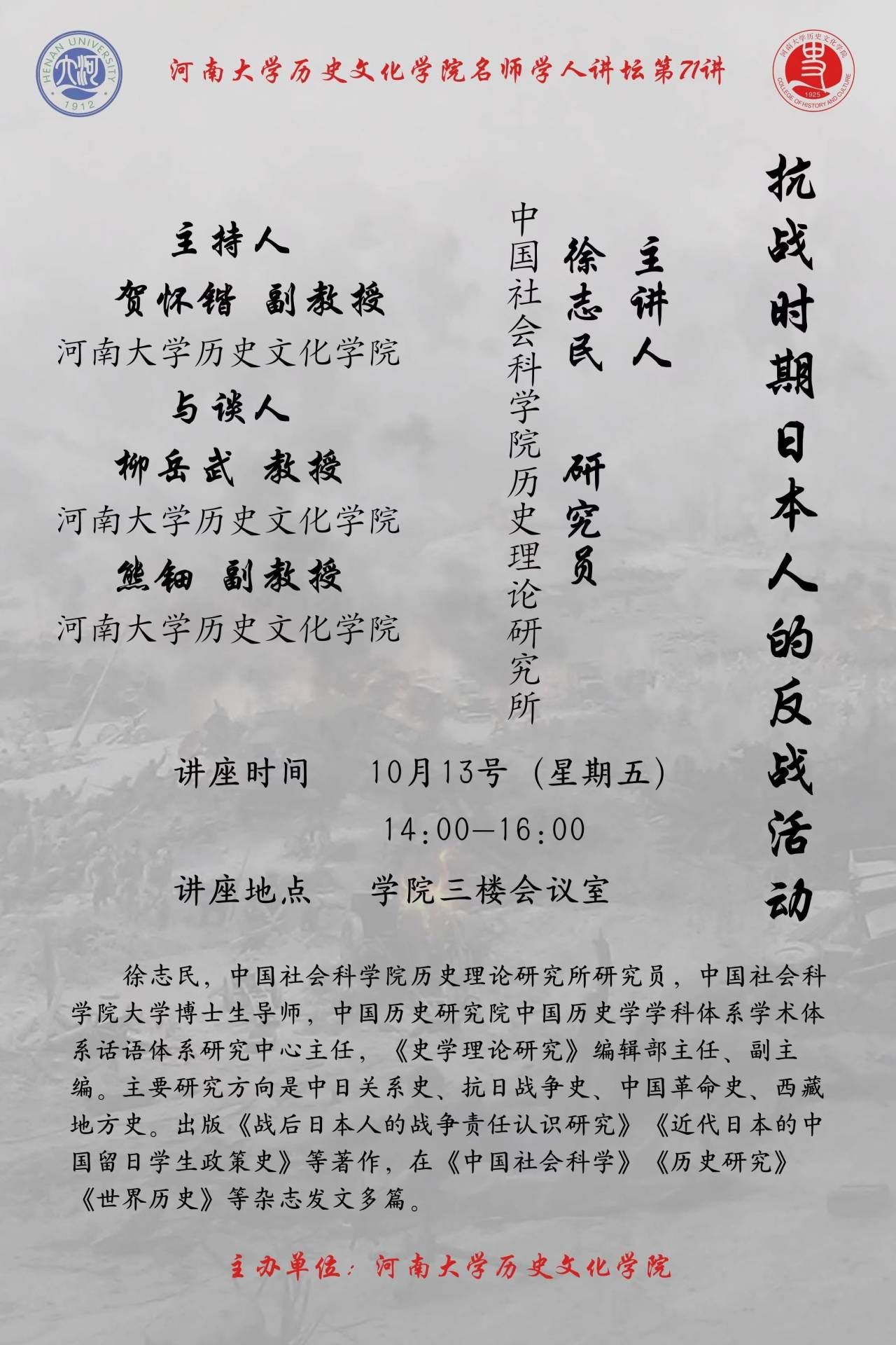 【讲座通知】徐志民:抗日战争时期日本人的反战活动