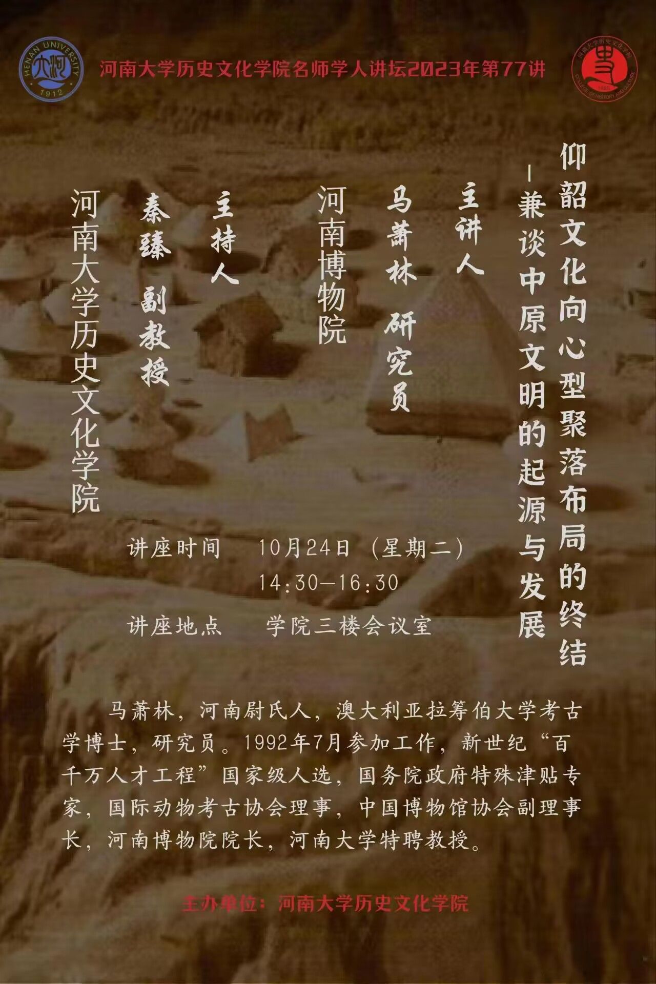 【讲座通知】马萧林:仰韶文化向心型聚落布局的终结——兼谈中原文明的起源与发展