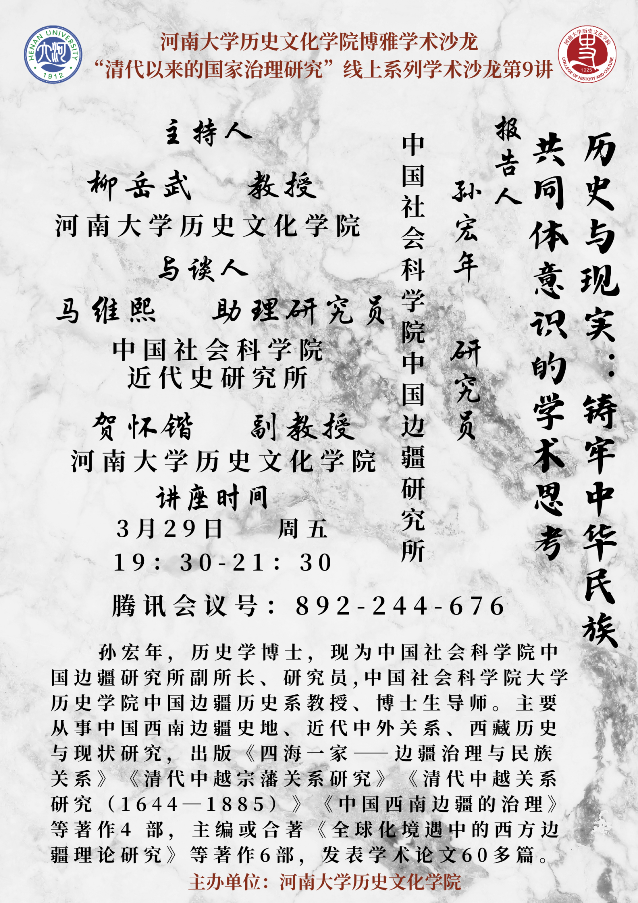 【讲座通知】孙宏年:历史与现实:铸牢中华民族共同体意识的学术思考