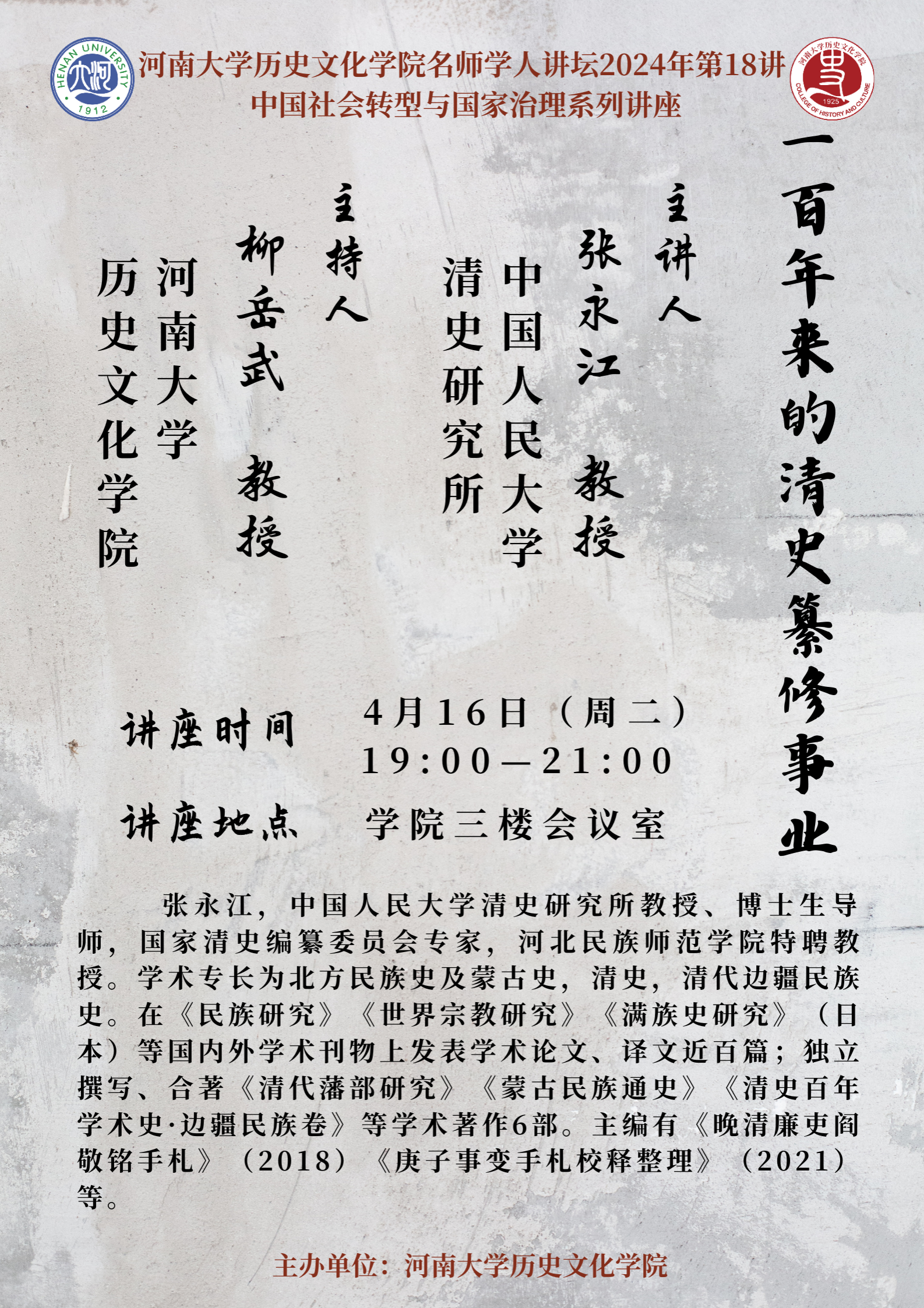 【讲座通知】张永江:一百年来的清史纂修事业