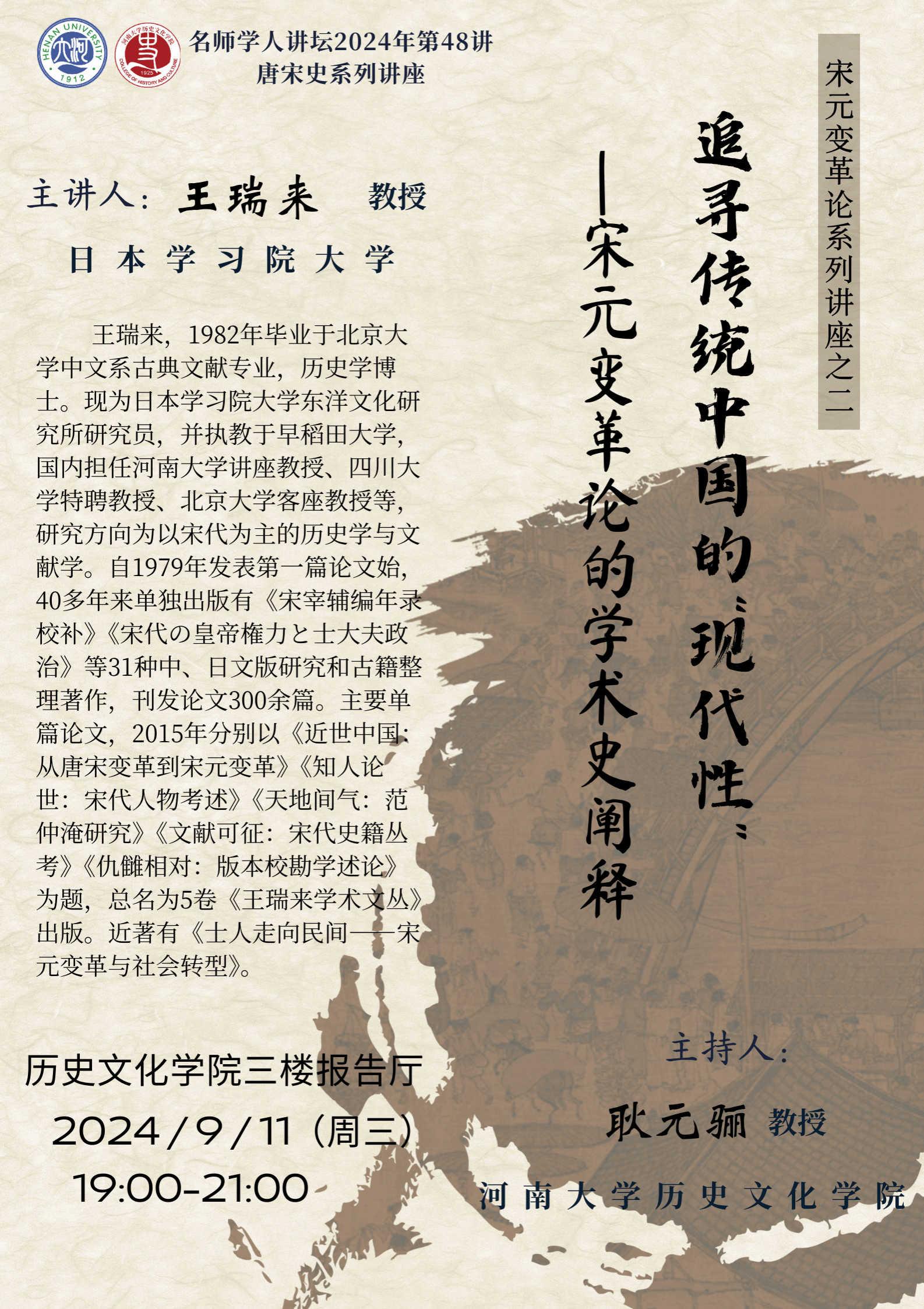 【讲座通知】王瑞来:追寻传统中国的“现代性”——宋元变革论的学术史阐释