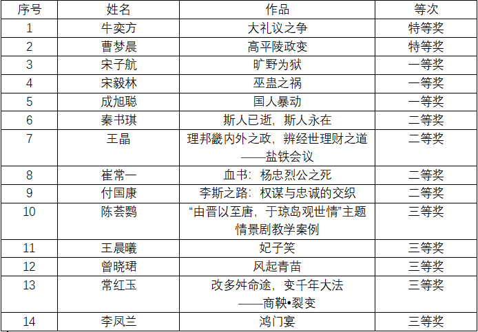 第一届“历史情景剧教学案例比赛”获奖名单