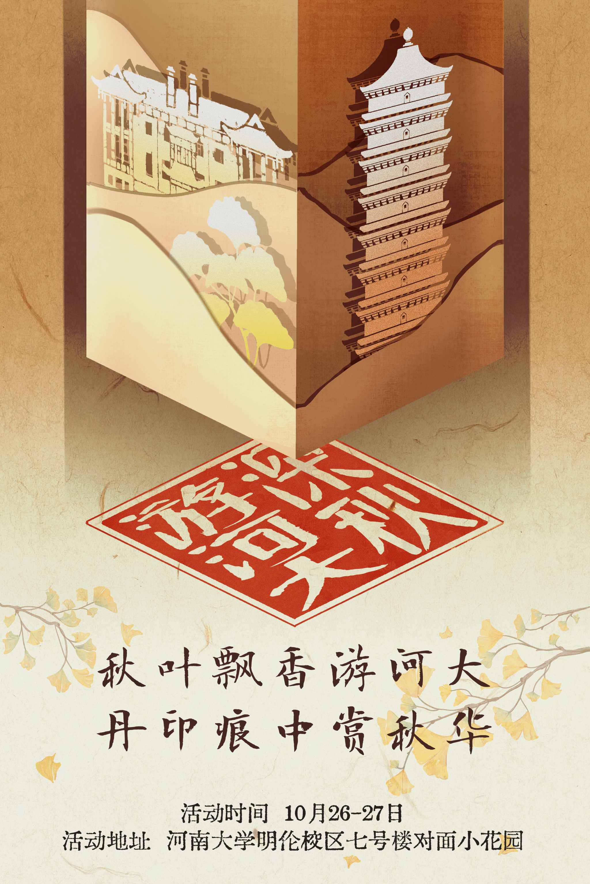 活动主题:秋叶飘香游河大,丹印痕中赏秋华