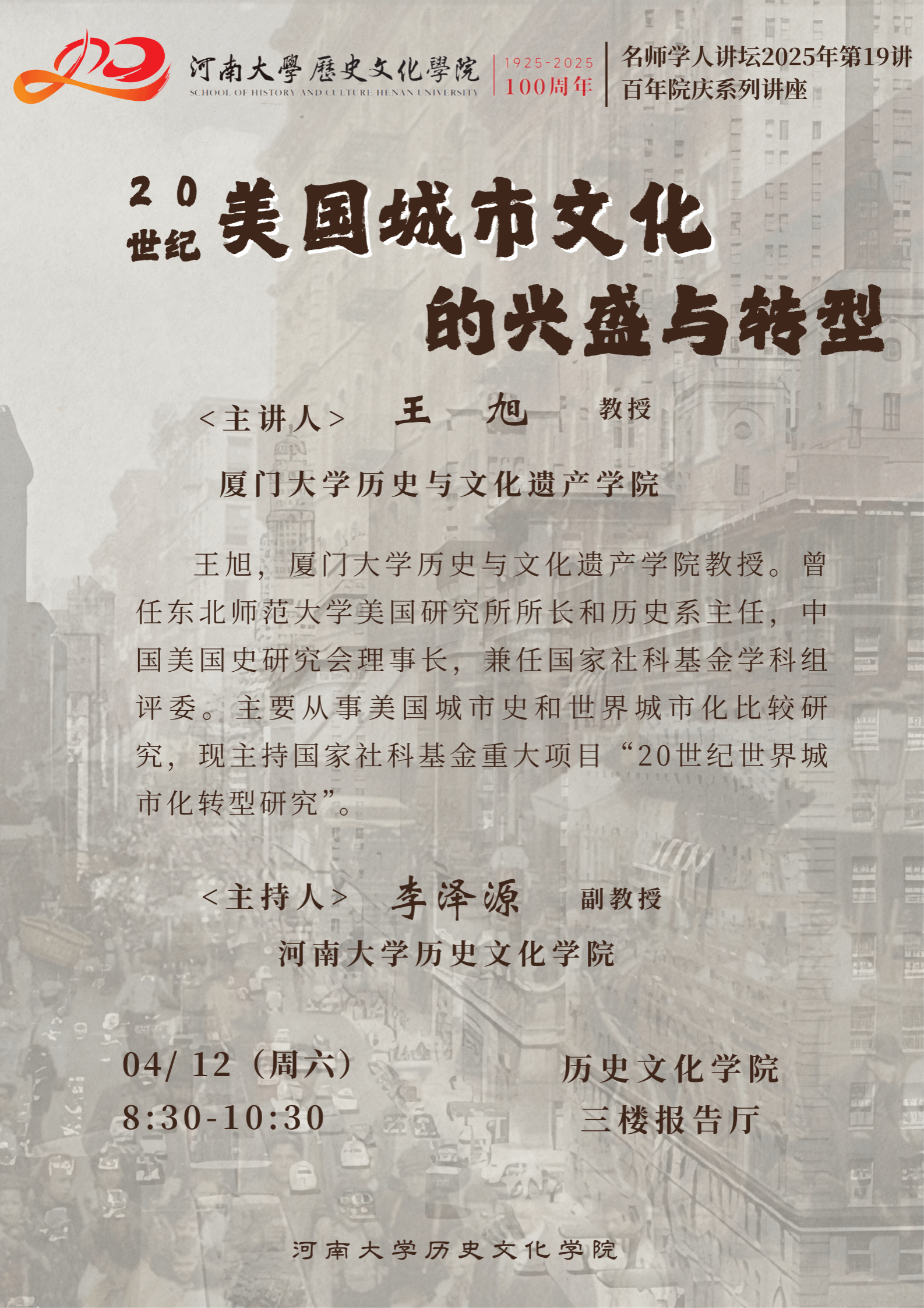 【讲座预告】王旭:20世纪美国城市文化的兴盛与转型
