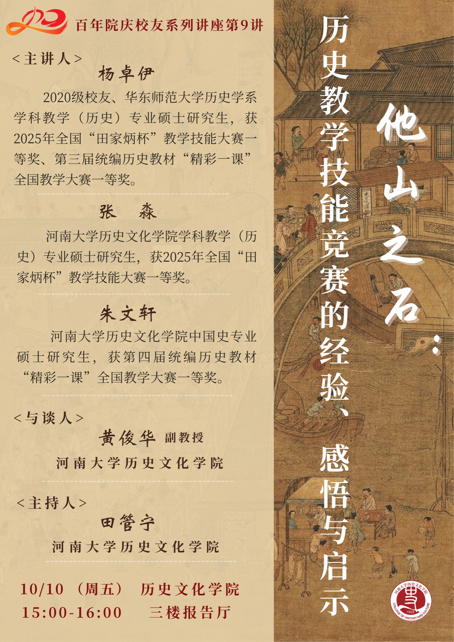 【讲座预告】他山之石:历史教学技能竞赛的经验、感悟与启示