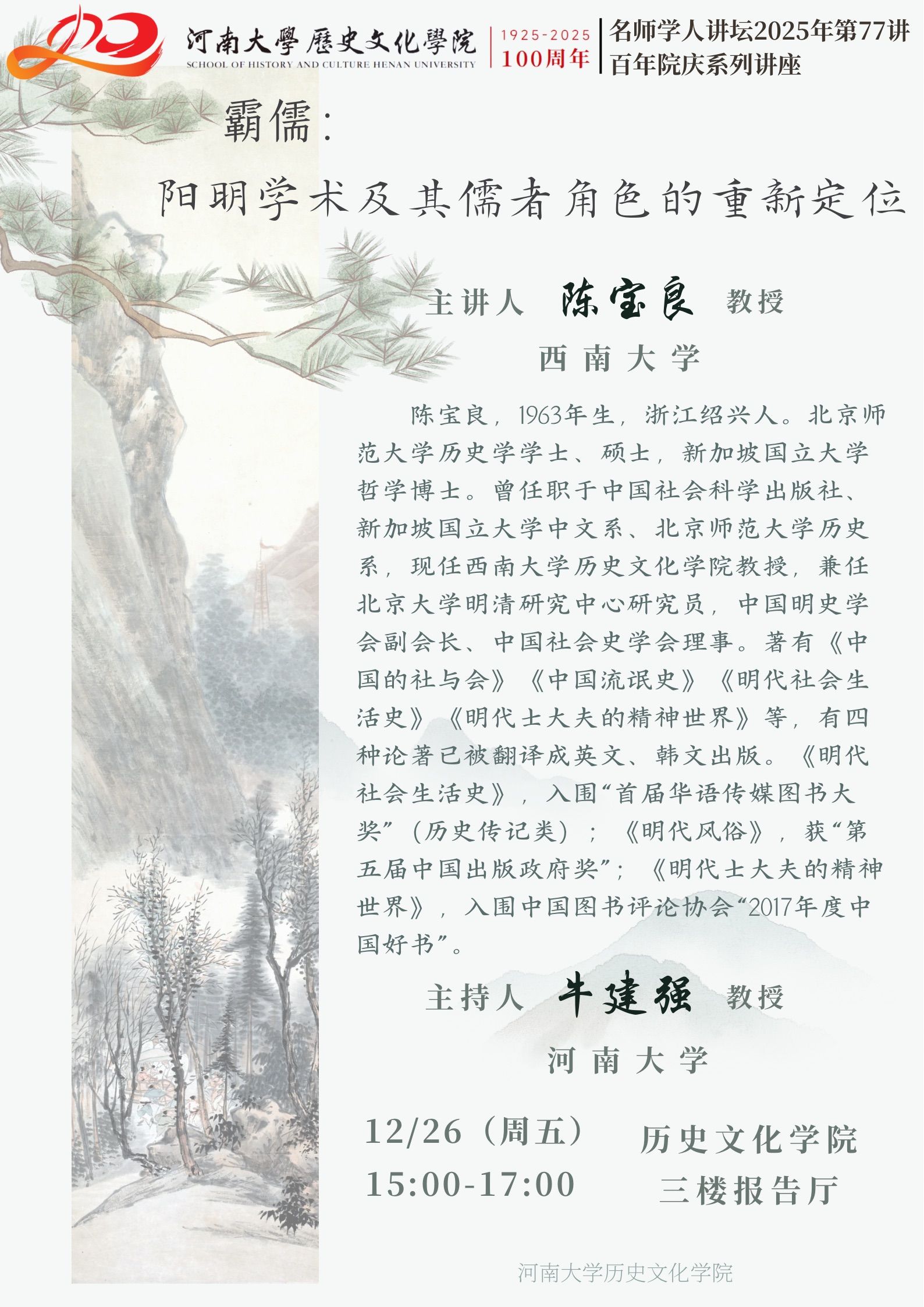 【讲座预告】陈宝良:霸儒:阴阳学术及儒者角色的重新定位