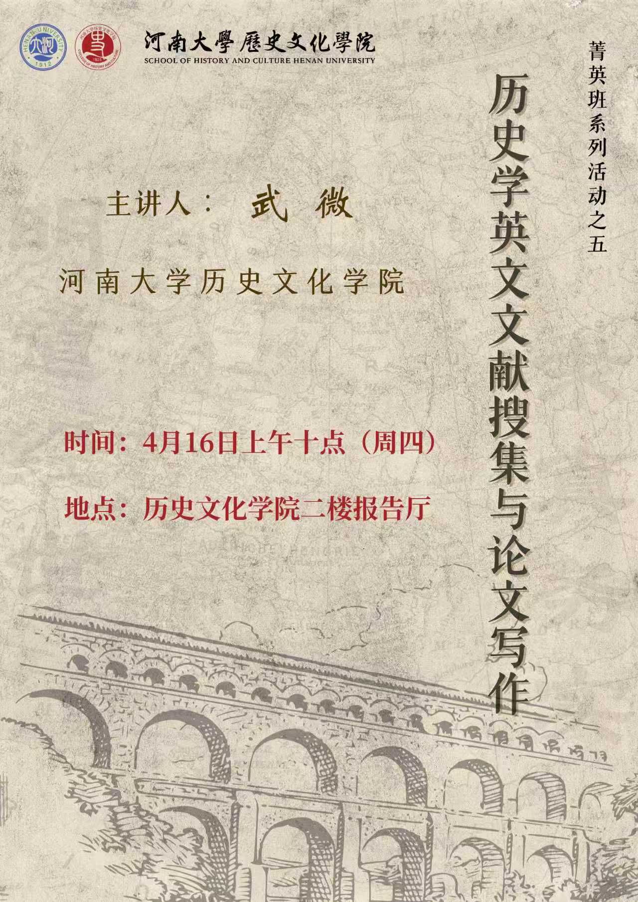 【讲座预告】武微:历史学英文文献搜集与论文写作