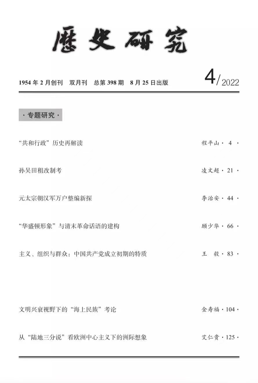 副教授艾仁贵在《历史研究》2022年第4期发表题为《从“陆地三分说”看欧洲中心主义下的洲际想象》的专题研究论文。