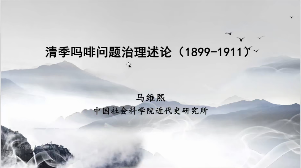 做题为《清季吗啡问题治理论述(1899-1911)》的线上讲座。本场讲座由哈尔滨工业大学(深圳)马克思主义学院裴广强副教授主持,长江大学历史系陈力教授、麻豆社