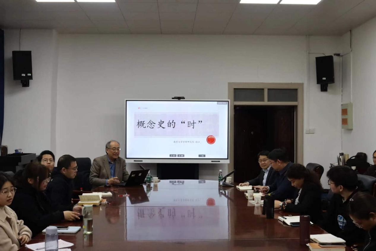 三楼会议室举行。孙江教授从科赛雷克的皮扣子的哲学切入,介绍了发展阶段论和三时段论这两种时间分类理论。他指出布罗代尔的三时段把发展阶段论直线式的时间相对化,对史学研究有很大的价值。随后,孙江教授指出任何历史时间都建立在自然时间的基础之上,来自自然时间的编年学对于受制于经验的历史现实是必不可少的。接着,孙江教授以中世纪这一历史名称的出现为例,证明了经验与期待之间的张力使历史时间可以被区别,并阐释了历史时间的流动性特征。最后,孙江教授进行了总结。科塞雷克的时间理论继承并创新了海德格尔和伽达默尔的思想,将概念从思辨的世界延伸到了日常社会生活,并观察这些概念作为语言的接受和意义变化的过程,从而分析作为共同体的人类是如何理解世界并采取行动的。