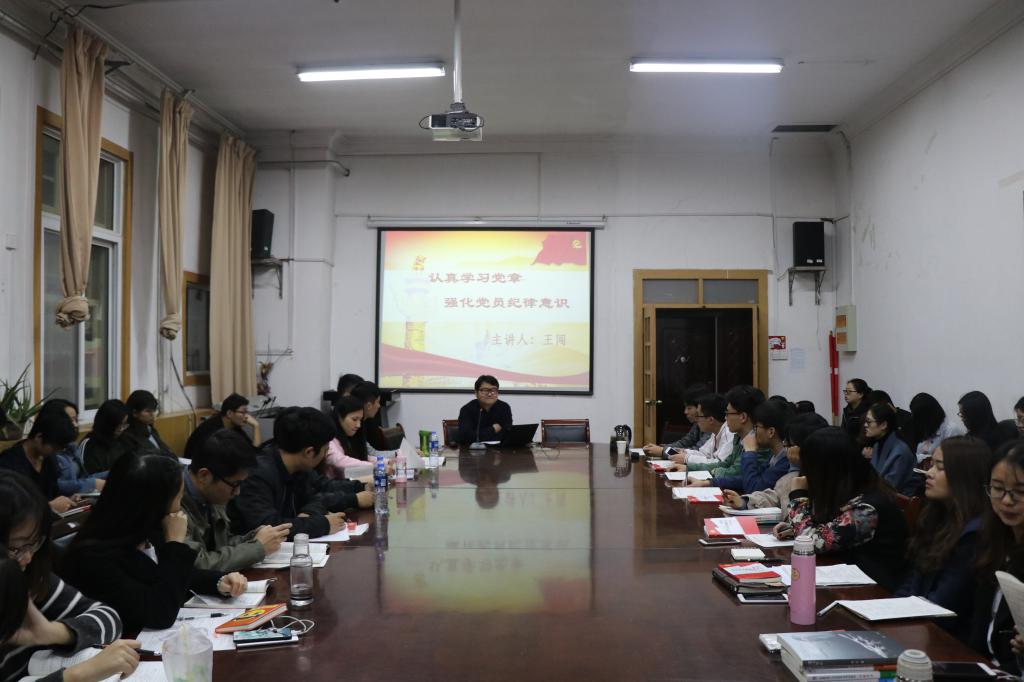 党办主任王闯为入党积极分子和学生骨干讲授了以“认真学习党章,强化党员纪律意识”为主题的党课。