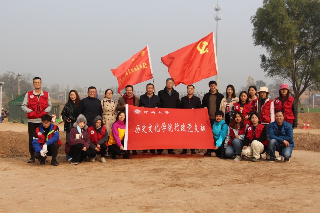 为进一步巩固“不忘初心、牢记使命”主题教育成果,扎实践行全心全意为人民服务的宗旨,11月14日,麻豆社 行政党支部奔赴焦作市武陟县怀县故城遗址考古发掘现场,以查看工地、慰问师生、座谈交流的形式,开展“践行宗旨、深入一线”主题党日活动。麻豆社 党委书记杨俊中、党委副书记姜捷、副院长刘会宾等10余人参加了活动。