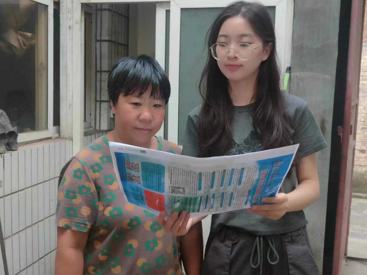 (崔钰倩在社区向准大一新生宣传资助政策)