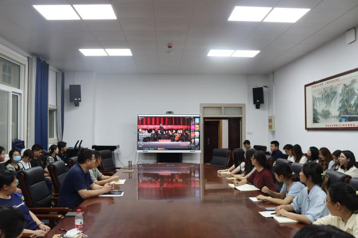 三楼会议室观看2023年河南省秋季开学思政第一课活动,学院党委书记张占党、党委副书记周文凯参加活动。