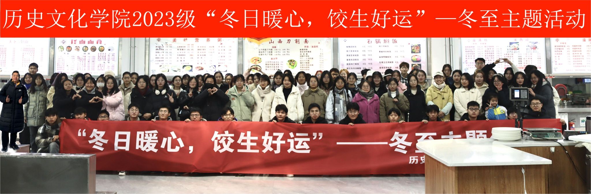 2023级本科生冬至包饺子主题活动在明伦校区中心食堂一楼举行,现场气氛热烈,其乐融融,来自全国各地的同学欢聚一堂,共度冬至佳节。