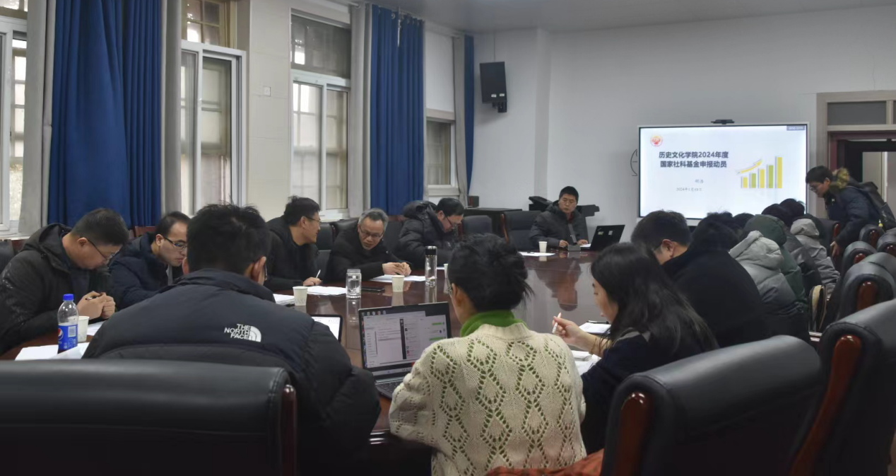 2024年度国家社科基金申报动员会及选题论证会在三楼会议室举行。会议由胡浩副院长主持,齐德舜、柳岳武、惠冬、孙银钢、艾仁贵、侯卫东、曹金萍等各学科专家担任选题论证评议组成员,拟申报本年度国家社科基金的教师参加会议。