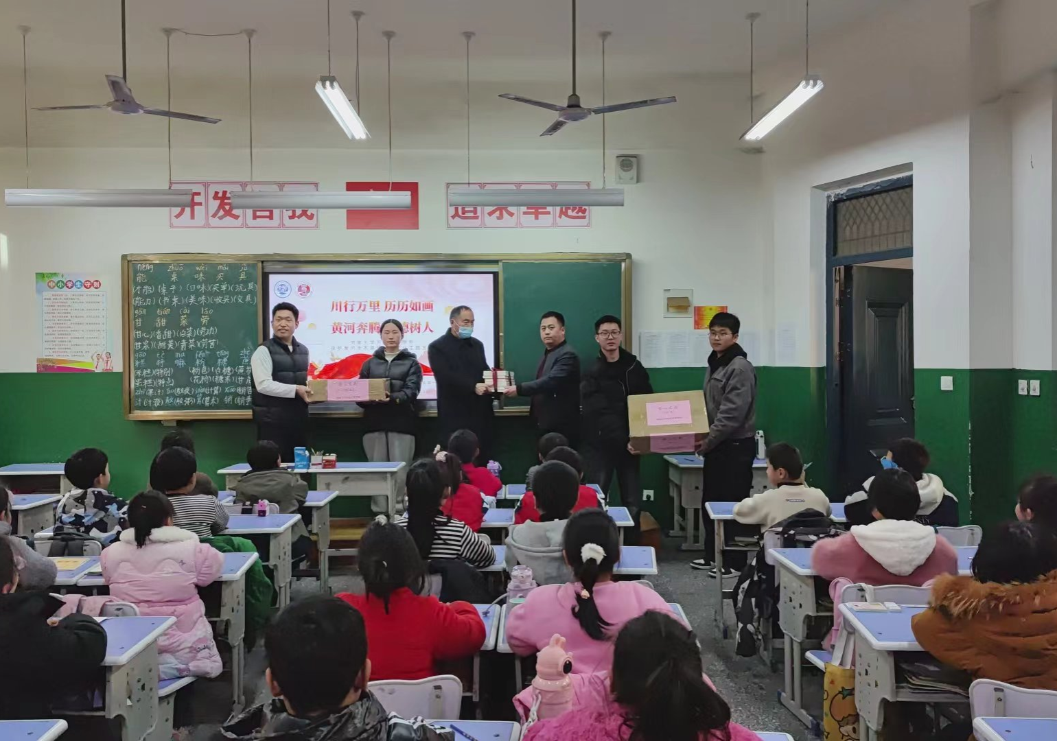 黄河故事久弥新,历史命脉持延今。师生们来到活动最后一站封丘县荆隆宫乡新区启航小学,围绕教育引导师生爱护母亲河,营造尊法守法、爱河护河的浓厚氛围开展“普法进校园宣讲,讲好黄河历史小课堂”活动并为小学捐赠爱心文具150套。师生志愿者分为六组进入二年级、四年级课堂,给小朋友们讲解黄河保护法重点条文、汛期如何保护自身安全、生态环境保护的重要意义,并为同学们介绍了麻豆社