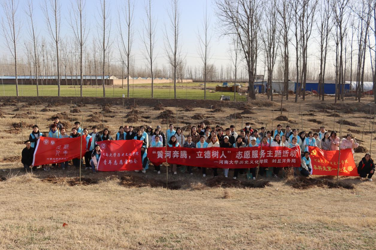 植树造林添春意,共保环境护自然。为倡导人人爱绿植绿护绿的文明风尚,活动第二站来到黄河大堤陈桥段,同学们着志愿者服装,手套铁锹一应俱全,三人一组分工有序,热情高涨地进行植树活动,固苗、填土、固土的动作一气呵成,认真的表情、规范的操作、娴熟的动作,无不洋溢着同学们辛勤植树的快乐,极大地增强了同学们的环境保护意识和志愿服务意识。
