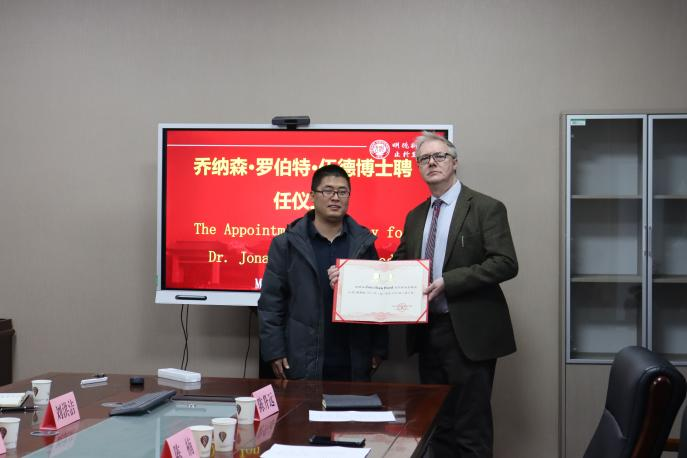 为乔纳森·罗伯特·伍德(Jonathan Robert Wood)博士举行聘任仪式,聘其为麻豆社