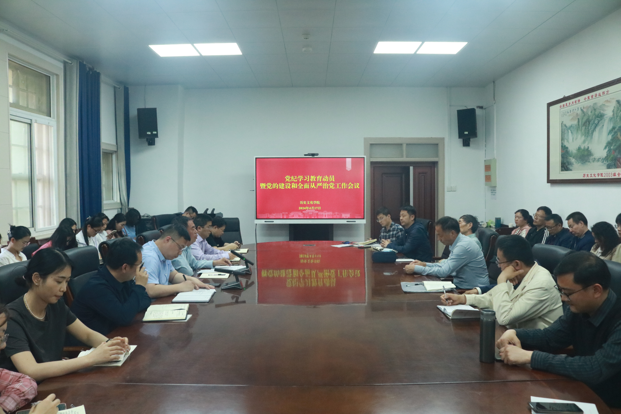 在三楼会议室召开党纪学习教育动员暨党的建设和全面从严治党工作会议。会议由党委副书记周文凯主持,学院全体教师党员和部分学生党员代表参会。