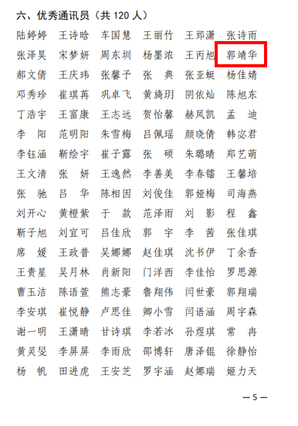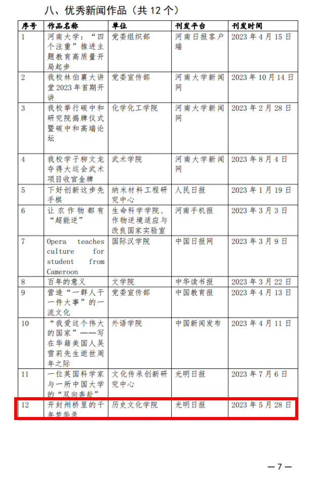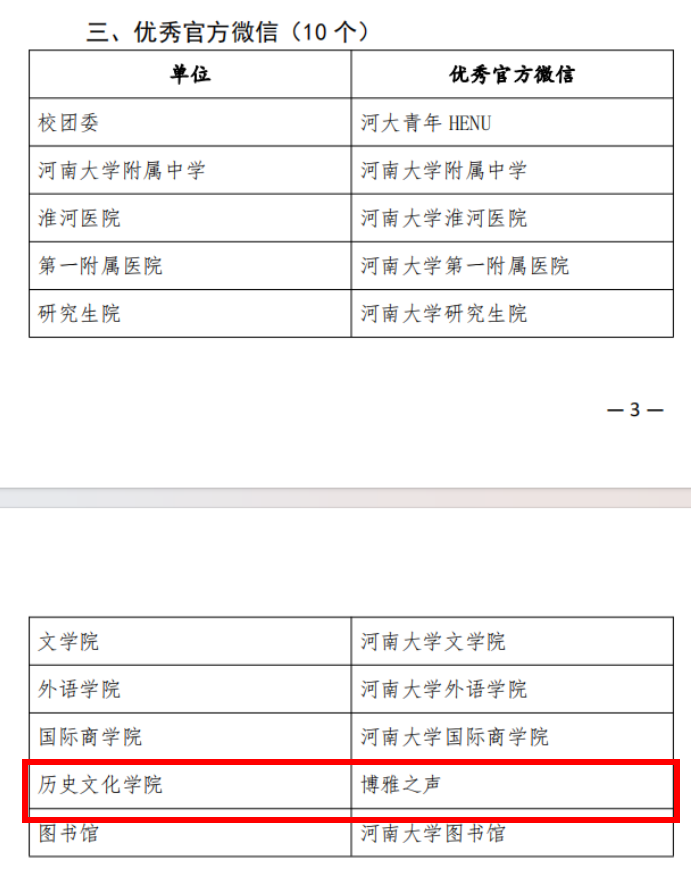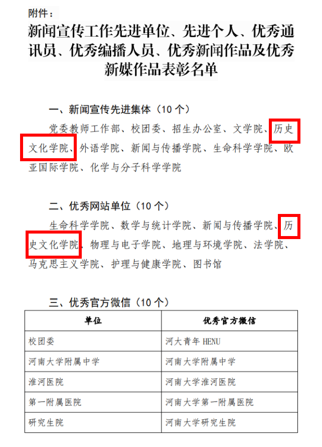 团委官方微信公众号“博雅之声”获得“优秀官方微信”等荣誉,本科生2021级辅导员郭浩老师获得“新闻宣传工作先进个人”,2022级历史学郭靖华获得“优秀通讯员”,2021级考古学张子轩和2022级文物与博物馆学周亚霖获得“优秀编播员”荣誉称号,《开封州桥里的千年梦华录》获得“优秀新闻作品”荣誉。